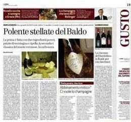 [11/25/2008, 15:02] | Due Chiaretti "premio qualit?-prezzo" su Bollicine d'Italia |  | ? in edicola "Bollicine d'Italia '09" del Gambero Rosso, la sedicesima edizione della guida agli spumanti italiani curata da Marco Sabellico e Giuseppe Carrus. Oltre duemila i vini degustati, 350 quelli selezionati, 146 quelli premiati per il lor rapporto qualit?-prezzo. E fra i premiati, anche due Bardolino Chiaretto Spumante: il metodo classico di Monte Saline e lo charmat di Villabella. "Tra i migliori Bardolino Chiaretto assaggiati c'? sicuramente questo eccellente ros? metodo classico" scrive la guida a proposito dello spumante di Monte Saline. Aggiungendo che questo Chiaretto ? "davvero irresistibile" e che "mostra una struttura solida ed equilibrata, polpa fruttata, fresco nerbo acido che sorregge la ricchezza estrattiva". "Segnaliamo con entusiasmo questo Bardolino Chiaretto Spumante" scrive invece la guida del vino di Villabella. Ed aggiunge: "Al palato ? carezzevole nell'effervescenza, presenta un accenno di tannino e persistono i toni fruttati. Chiude lungo all'insegna del frutto. Eccellente". | TrackBack> |  |  |  |